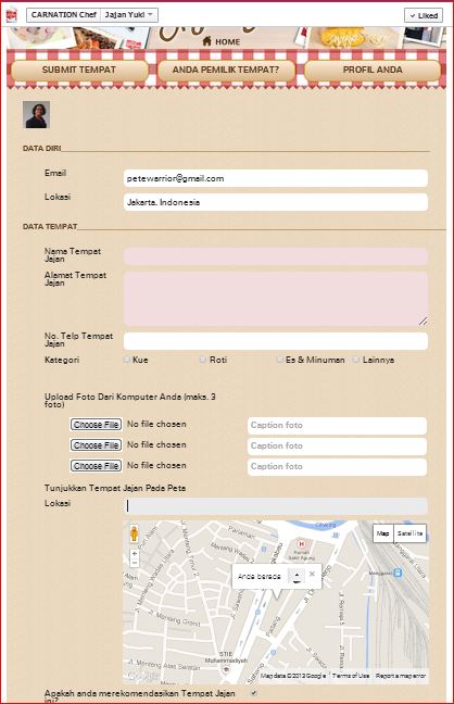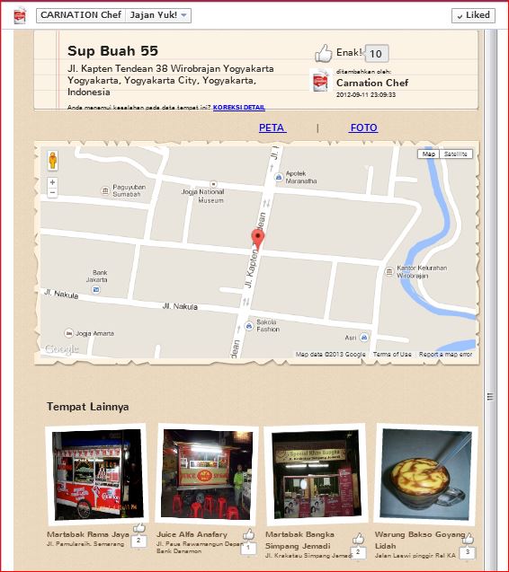 Facebook application for locating partners’ culinary establishments.